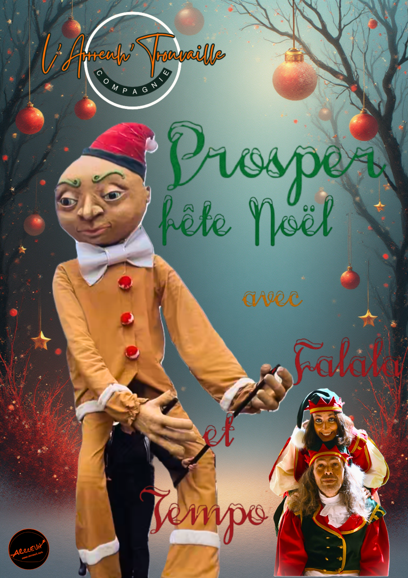 Prosper grand bonhomme de pain d’épices bien connu pour son titre de meilleur danseur du Pays du Père Noël est accompagnés par Falala et Tempo.